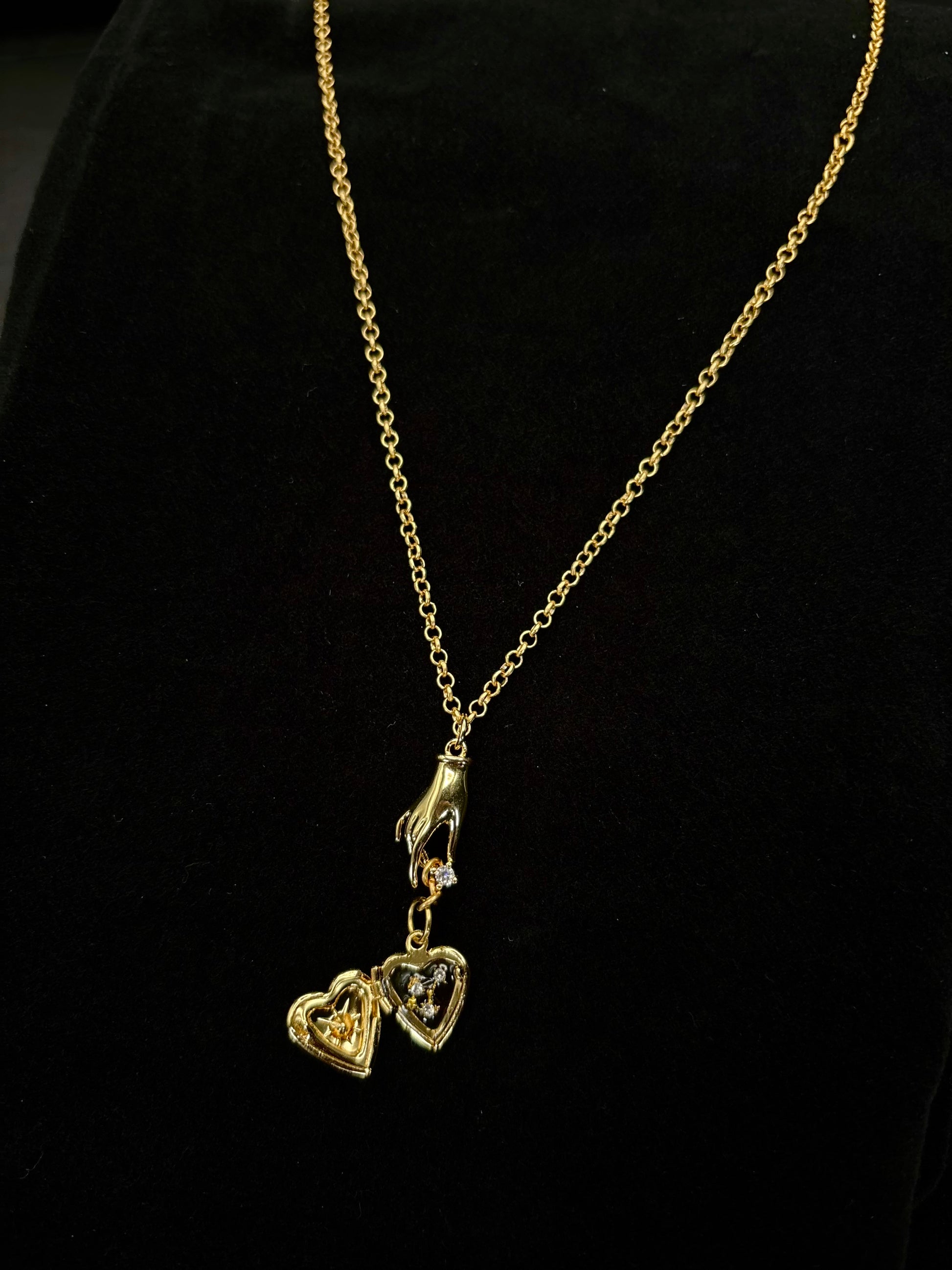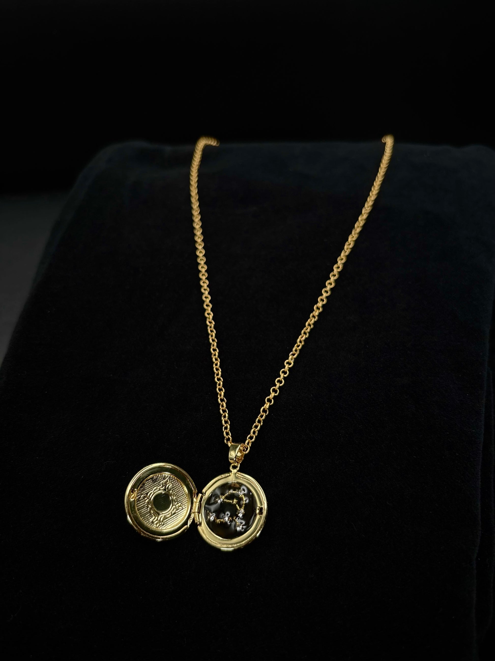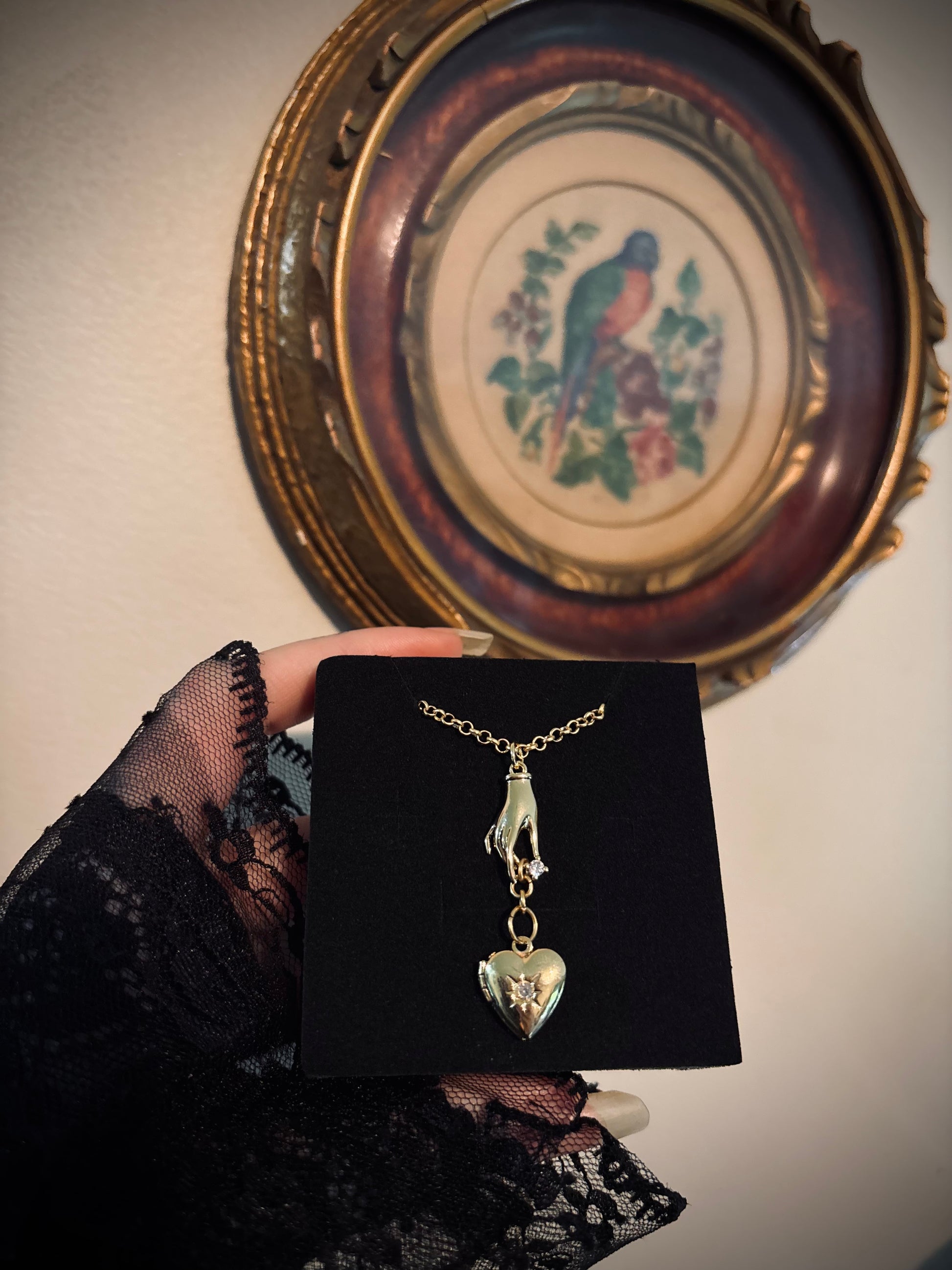 Inspired by Victorian morning locket, and the symbolism of celestial navigation, the Fatekeeper is designed as a vessel for the unseen threads that a constellation preserved within, a fragment of the night sky carried close to the heart. Suspended from the divining hand, an age old symbol of fate and fortune, the locket becomes both ornament and Talisman.