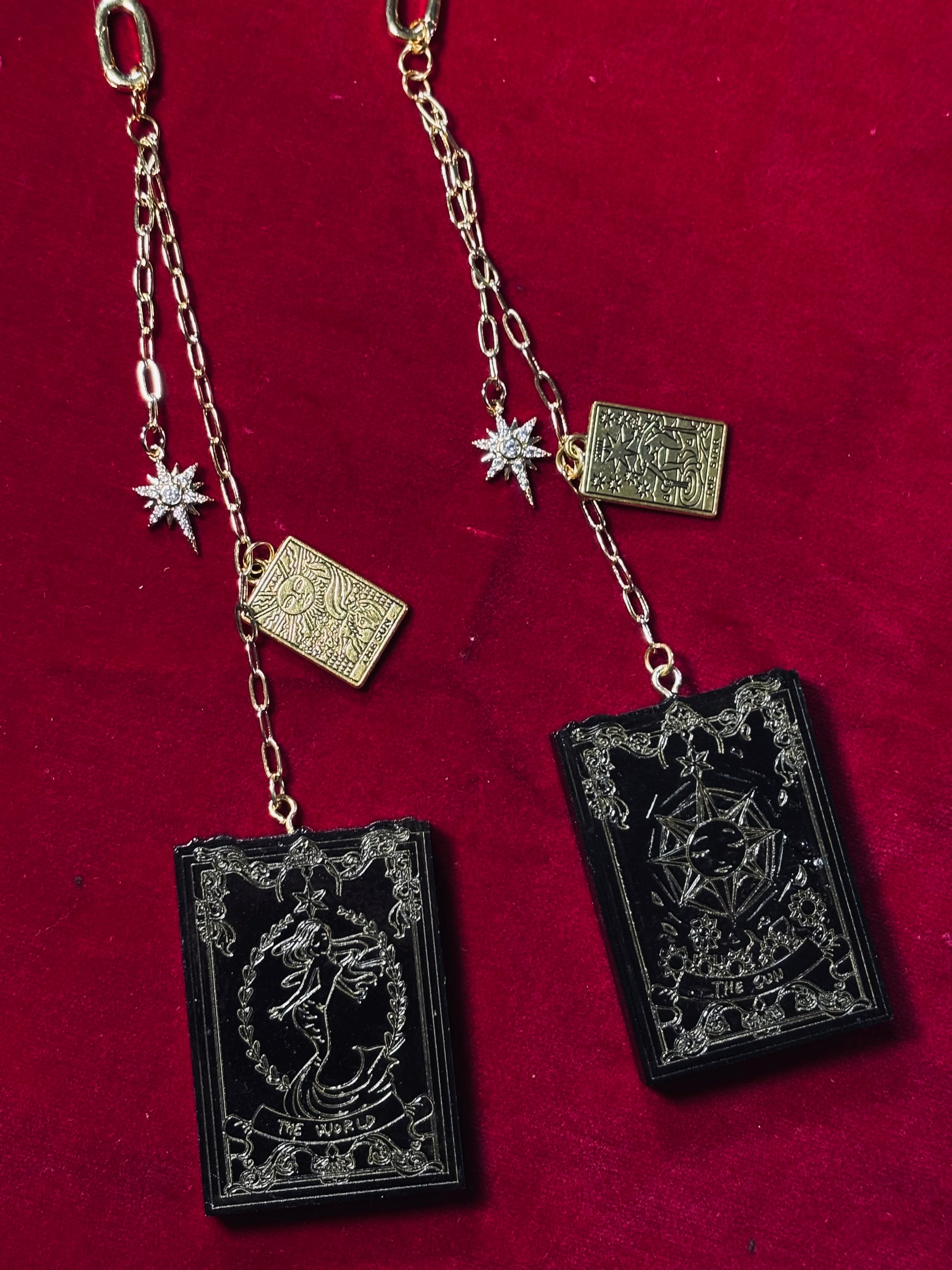Each Talisman is a handcrafted, portable piece of celestial magic designed to carry the wisdom of the Major Arcana with you. These Talismans feature a hand painted Tarot charm forged from solid black resin. Adorned with 18K gold plated accents, secured with a spring clasp, and a combination of gold plated charms set with sparkling cubic zirconia. Suspended from an 18k gold plated chain, ensuring that your connection to the divine is always close at hand.