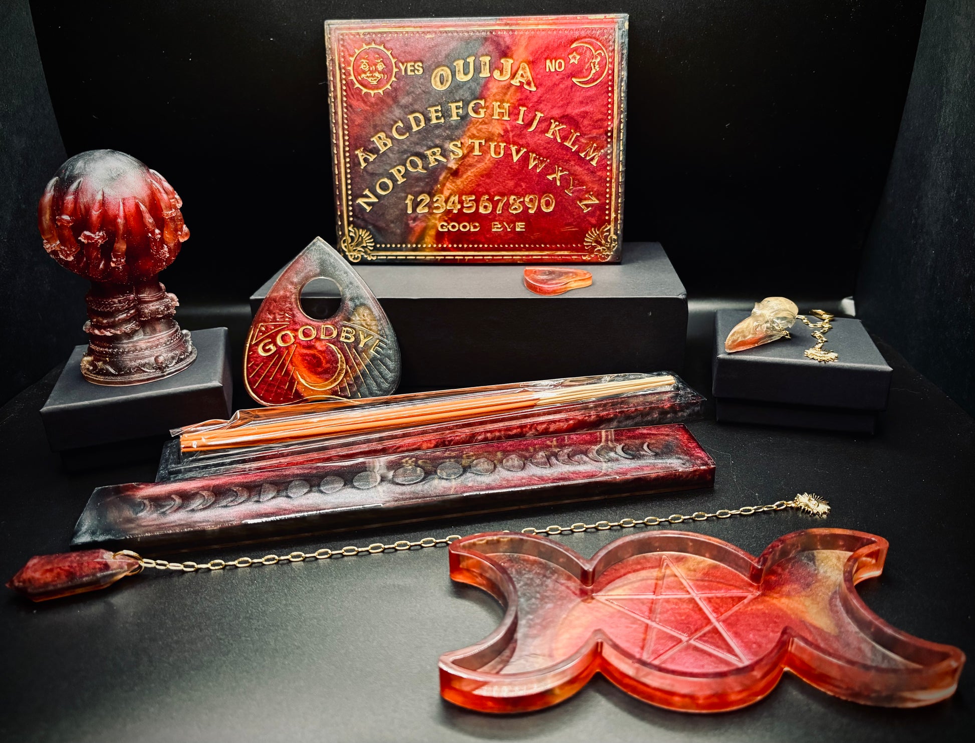 A custom made Altar Collection of your choosing. From Seance to smoke, from pendulum to prophecy, this curated collection was crafted for the devoted, the curious channeller and the witch who knows the veil is thinnest when intention meets object.